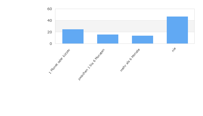 Grafico: interruzione Diagramma a colonne Diagramma a barre orizzontali Diagramma circolare Larghezza: Altezza: Lunghezza del testo: Pagina 2, Domanda 2: Wie lange nutzen Sie unser Produkt bereits ? (Risposta obbligatoria) 147 Partecipante 1 Monat oder kürzer 36 zwischen 1 bis 6 Monaten 23 mehr als 6 Monate 20 nie 68